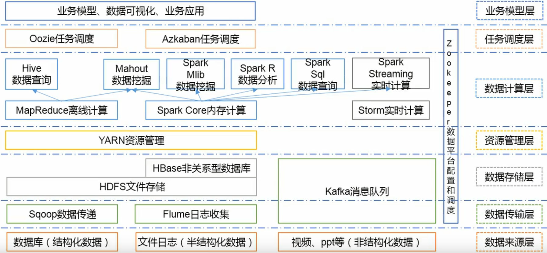 广义hadoop:指hadoop生态系统(生态圈)。hadoop框架是其中最重要最基础的一个部分。生态系统中的每一个子系统只能解决某一个领域的特定问题域。