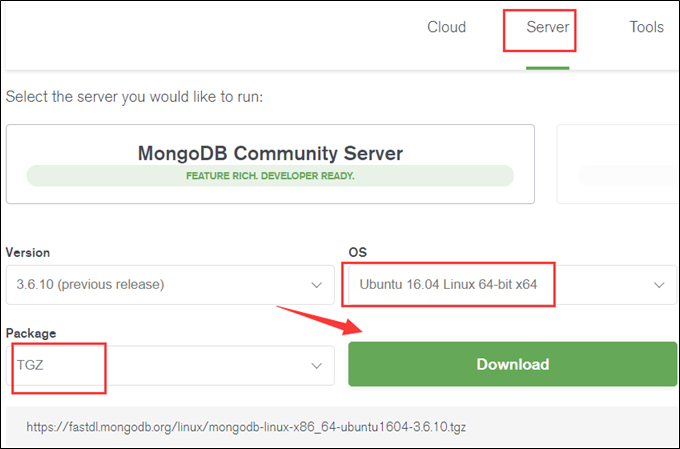 MongoDB Download Center官网下载Community版本。